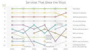 This CSA sourced graphic from the Lionbridge blog describes the fastest growth segments in the language services market. Clearly, translation, software and website globalization are at the top of the growth list for this type of paid translation service.